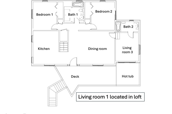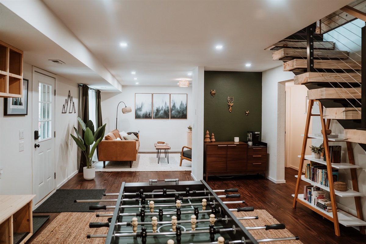 With 2 bedrooms and living room spaces on each floor as well as the loft with a large seating area, this house is ideal for one or two families or groups up to 8 people. The different entertainment areas provide ROKU TVs on each floor, many different board games as well as a foosball table.